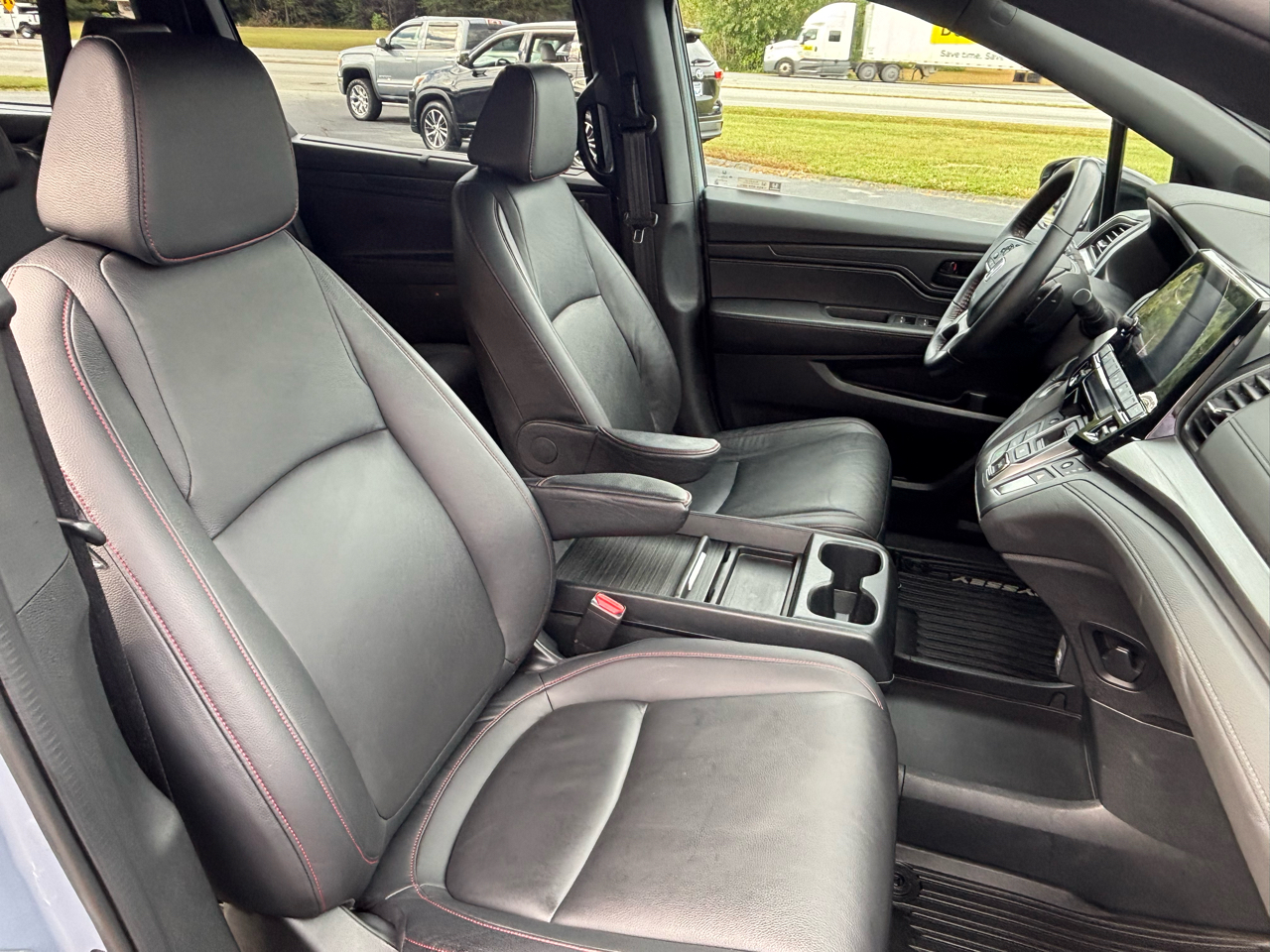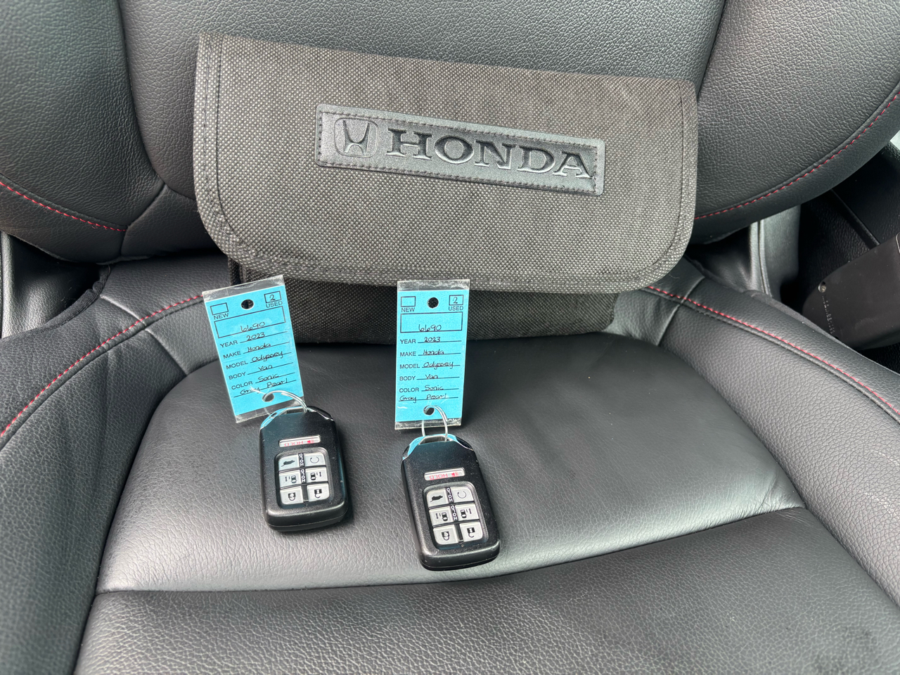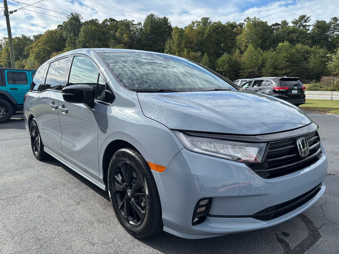 This Sonic Gray Pearl 2023 Honda Odyssey Van would be a welcomed addition to your family. Gas Mileage 19 City 28 Highway. This vehicle comes equipped with a Black Leather Interior, Honda Brander Rubber Mats, Front, 2nd Row and 3rd Row, Back-Up Camera, 2 Keys, Owners Manual, 3rd Row Seating, Bluetooth Audio Connection, Heated Front Seats, Power Rear Sliding Doors, Power Tailgate. If you have any questions please contact us via our website at www.carolinacarco.com or give us a call at (828)-572-4840.