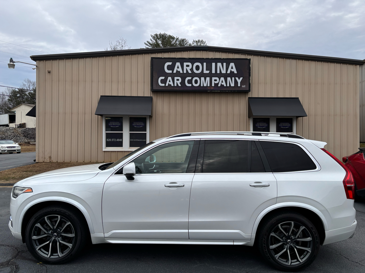 This Crystal White Pearl 2016 Volvo XC90 T6 Momentum would be a welcomed addition to your family. Gas Mileage 20 City 25 Highway. This vehicle comes equipped with a Caramel Leather Interior, 3rd Row Seating, Back-Up Camera, AWD, Heated Front Seats, Panoramic Moonroof, Bluetooth Audio Connection, Navigation, 9" Touchscreen Media Center. If you have any questions please feel free to send us a vehicle inquiry on our website at www.carolinacarco.com or give us a call at (828)-572-4840.